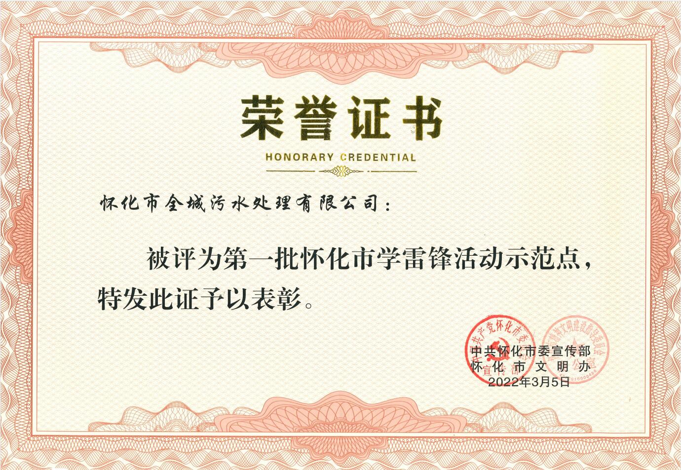 • 2022年3月被中共懷化市委宣傳部評為懷化市第一批“學雷鋒活動示范點”榮譽稱號